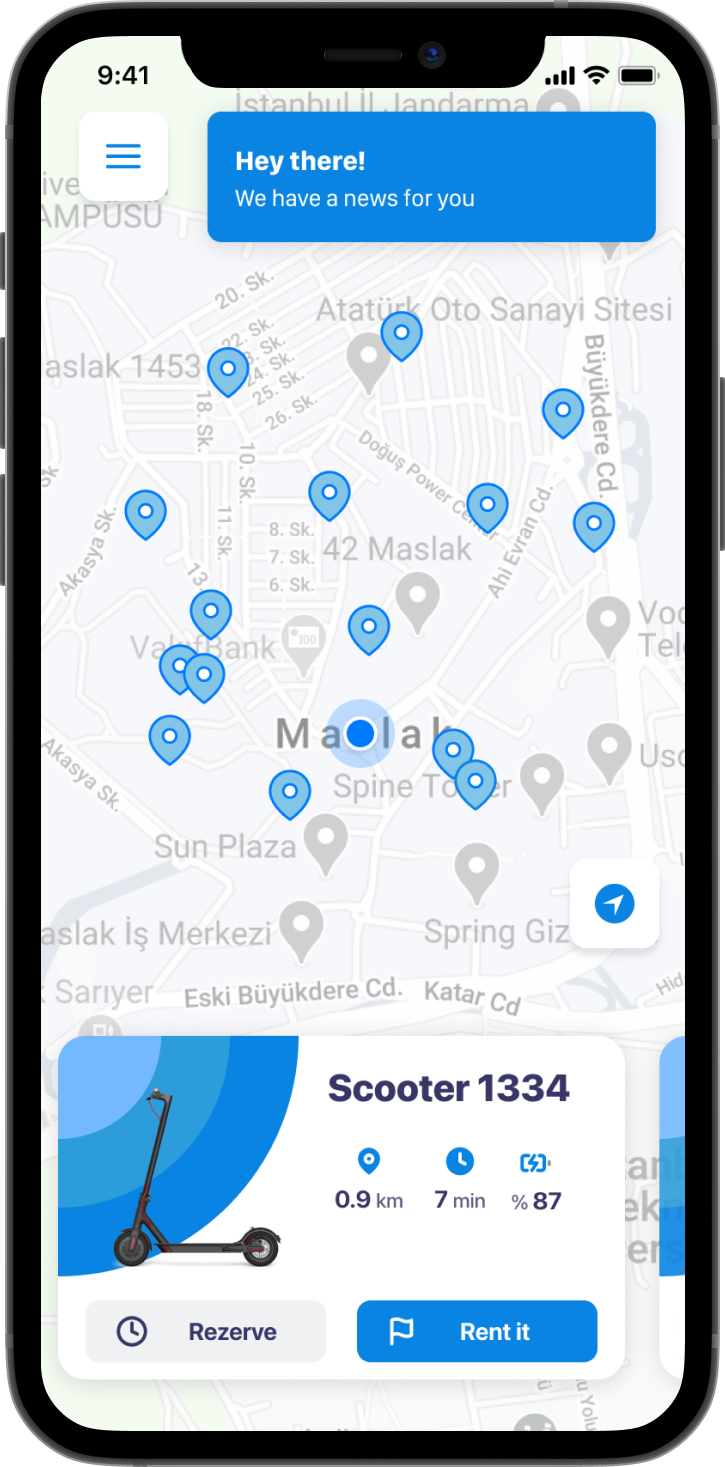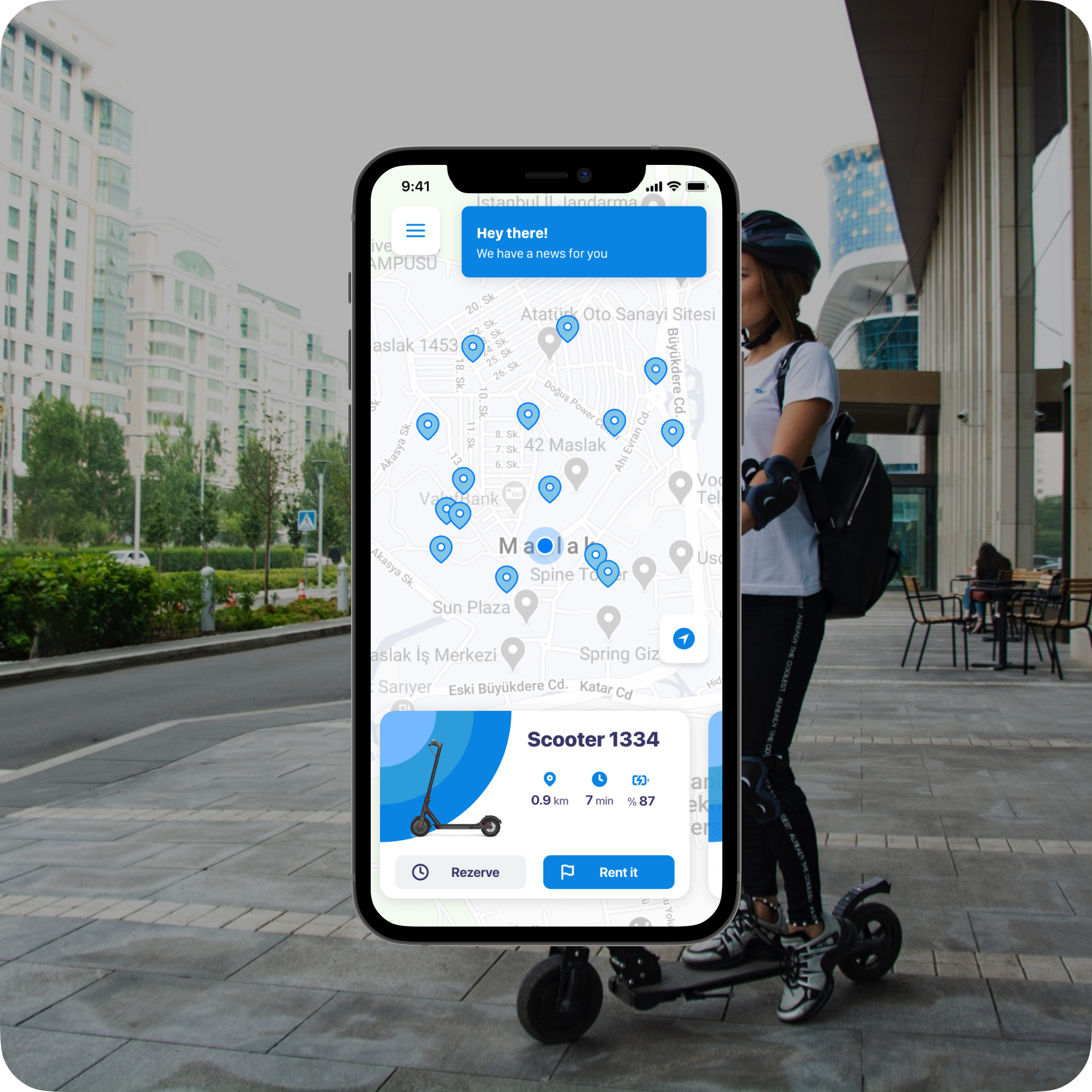 Branded mobile apps for your riders (iOS, Android). A powerful panel to manage vehicles,